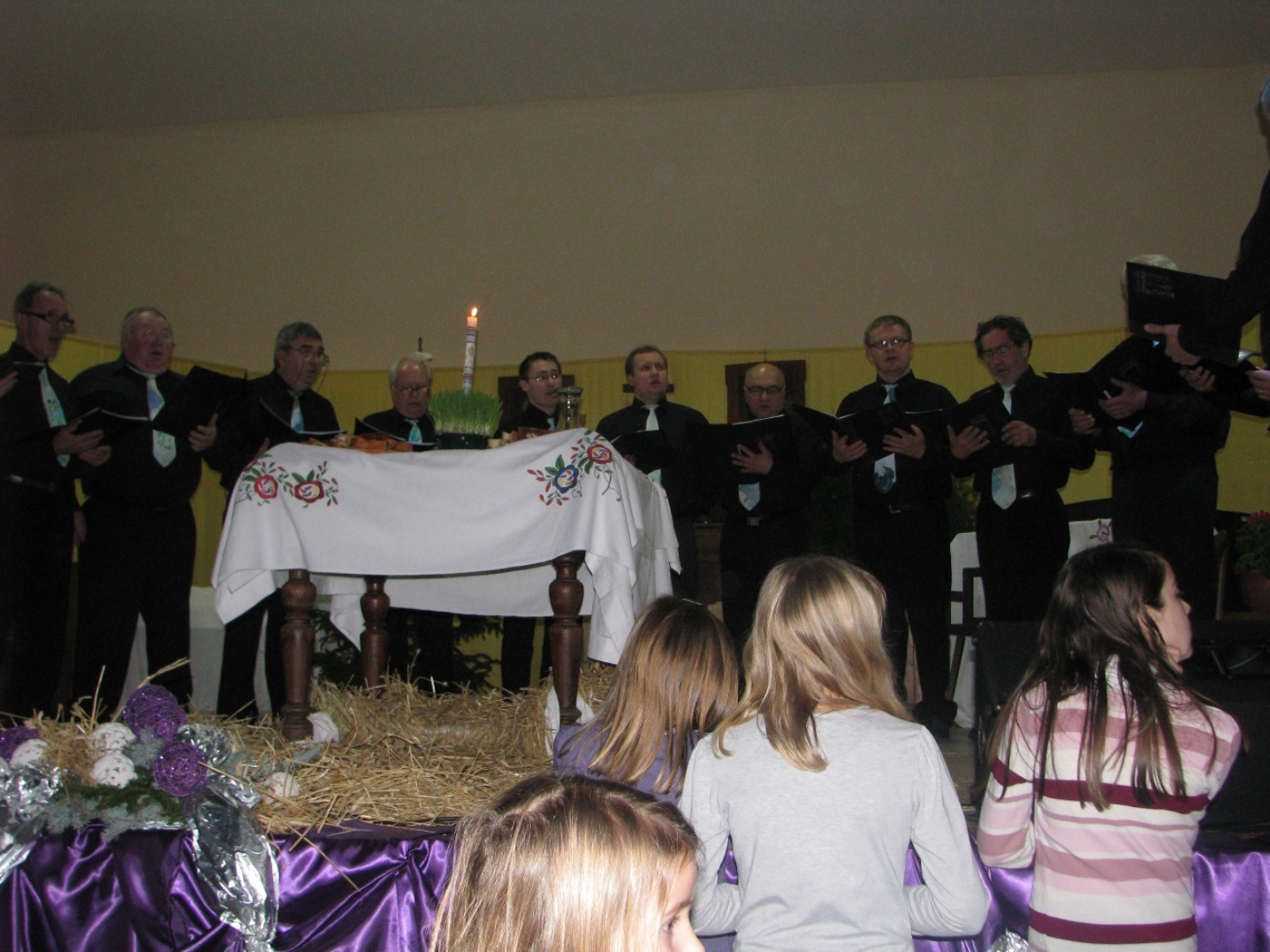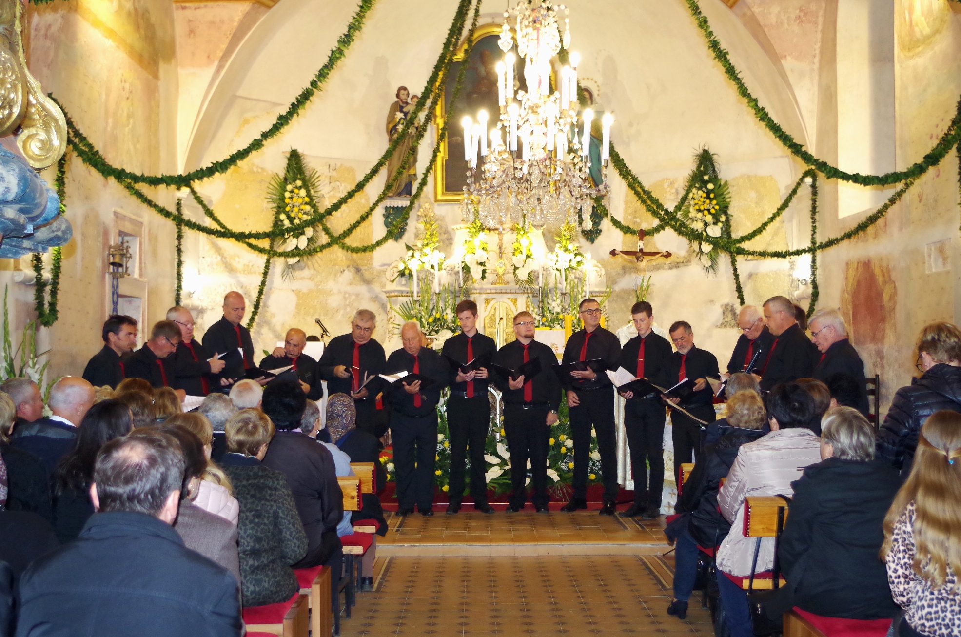 Mješoviti zbor je pjevao pjesmu „Gle dan“ autora Bortnjanskog, dok je muška vokalna skupina pjevala pjesmu „Tu pred tobom“ autora Š. Marović.